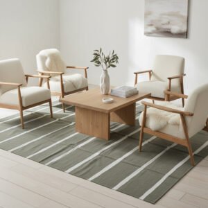 Cotton Panja Dhurrie Rug for Living Room & Dining Room, Handmade Flatweave