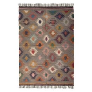 Handmade Kilim Wool Jute Rug, Boho Rustic Flatweave