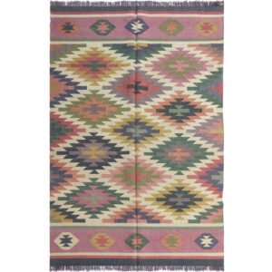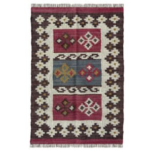 Rustic Handwoven Reversible Wool & Jute Kilim Rug