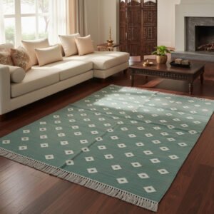 Flatweave Cotton Area Rug, Handmade Dhurrie for Bedroom Living Room