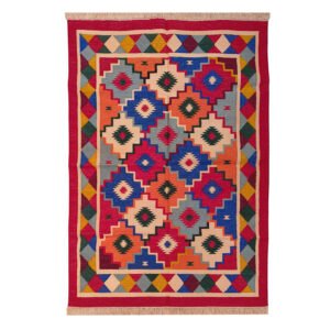 Geometric Multicolor Wool Jute Kilim Rug