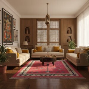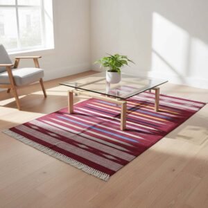 Cotton Panja Dhurrie Rug for Dining Room Interior Rug