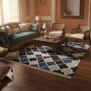 Cotton Panja Dhurrie Rug for Living Room Seating Decor
