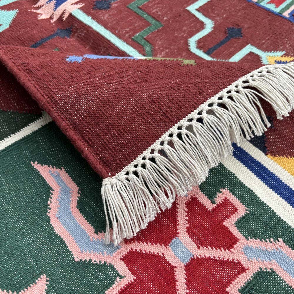 Each rug is a testament to patience and precision. Because we use a tight-weave method, your dhurrie rug is fully reversible, offering double the life and beauty. Dyed with natural vegetable colors, the earthy tones are gentle on the environment and bring a warm, authentic soul to your living space.