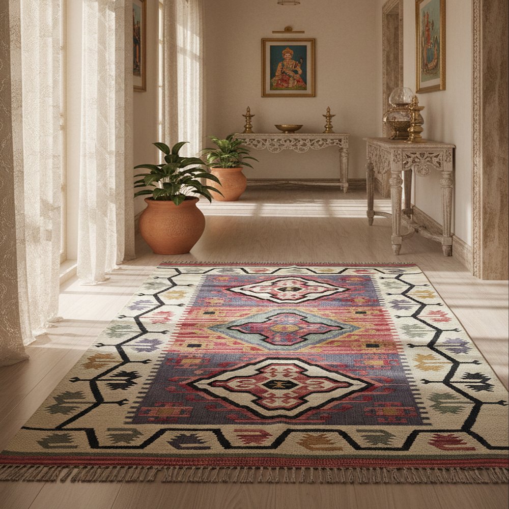 Best Handwoven Wool & Jute Kilim Rug – Multicolor Edition