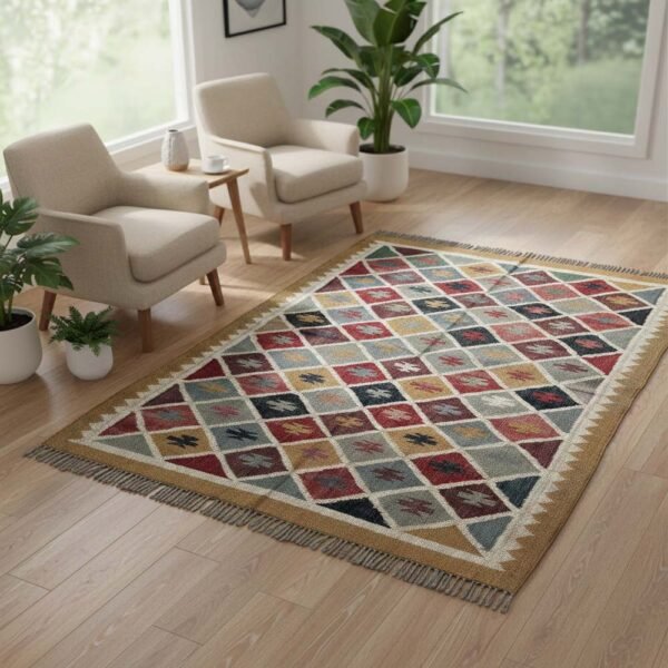 Best Handwoven Wool & Jute Kilim Rug – Multicolor Edition