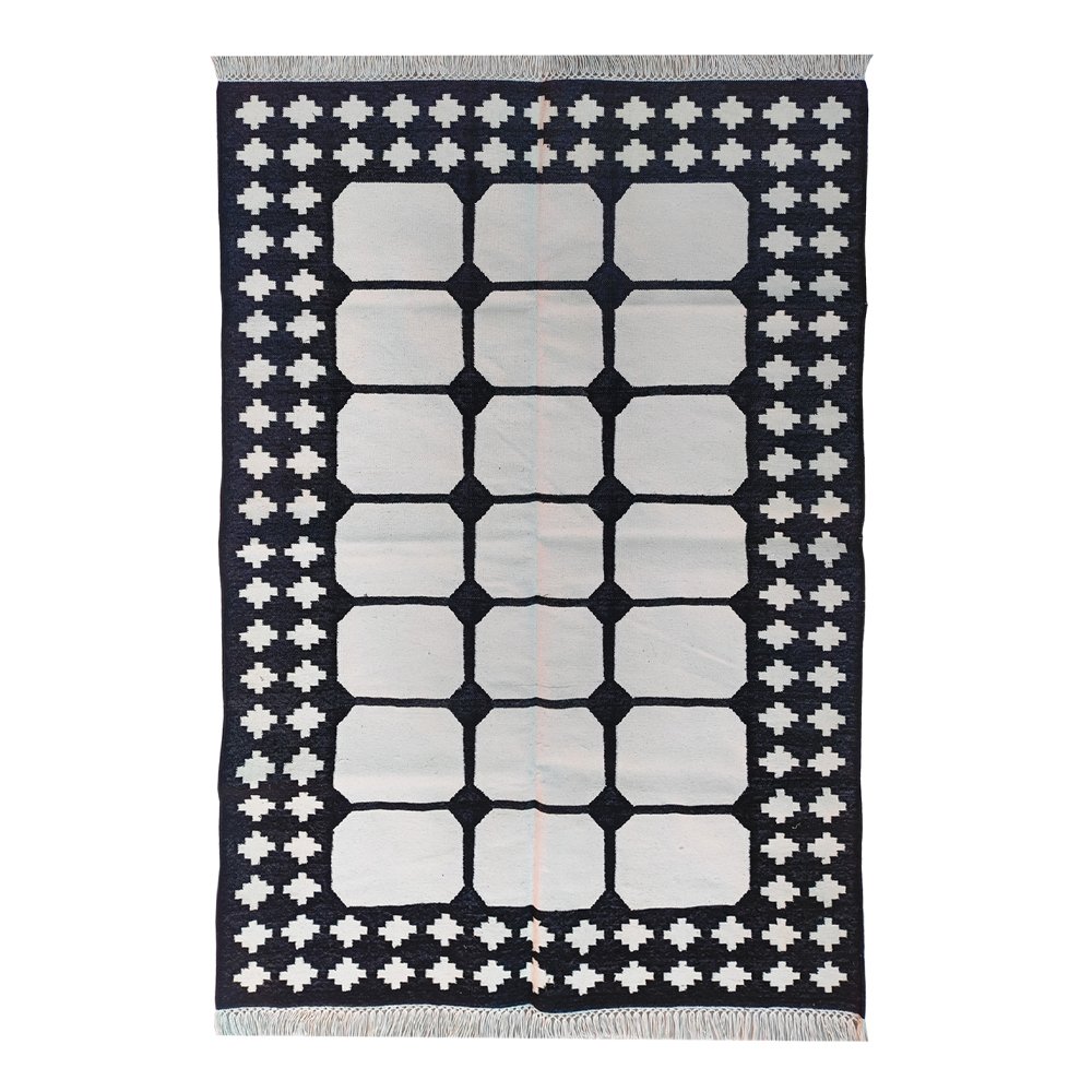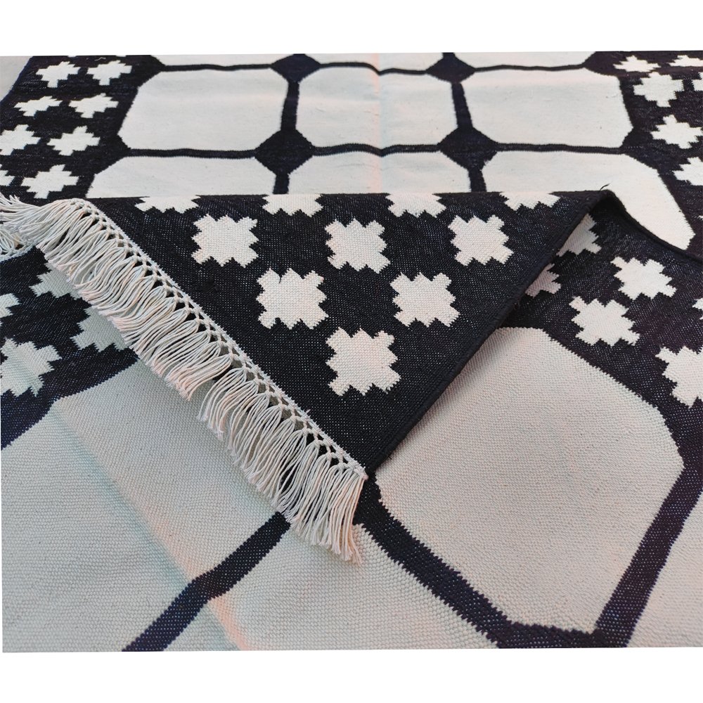 Cotton Panja Dhurrie Rug for Bedroom, Handwoven Reversible