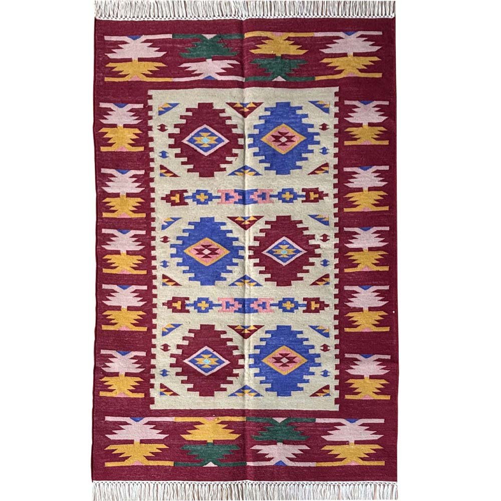 Handwoven Wool & Jute Kilim Dhurrie Rug – Multicolor