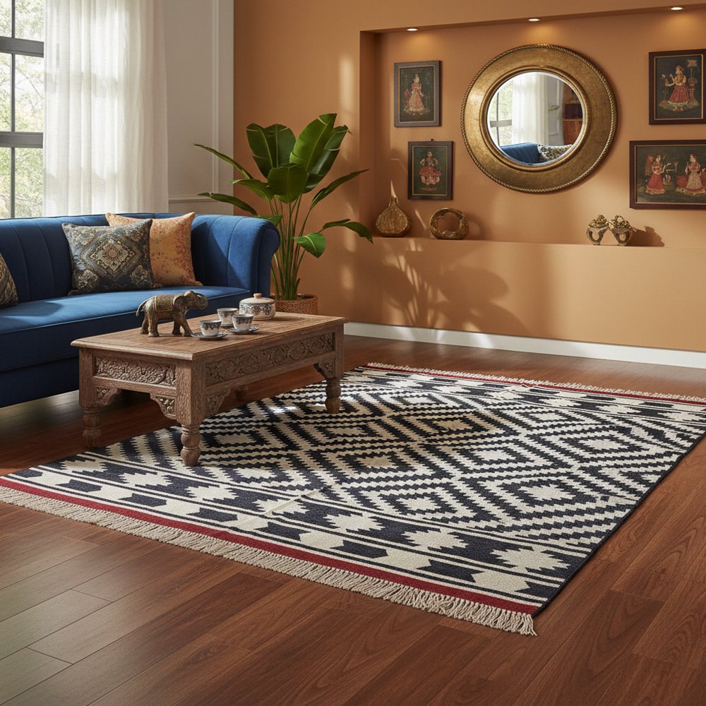 Designer Flatwoven Cotton Area Rug – Hand-Made