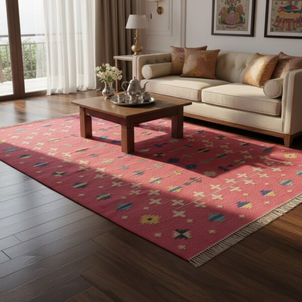 Bring a piece of heritage into your home with our 20-count premium cotton dhurrie rug. These aren’t just rugs; they are stories woven by hand, thread by thread, using the ancient Panja weaving technique.