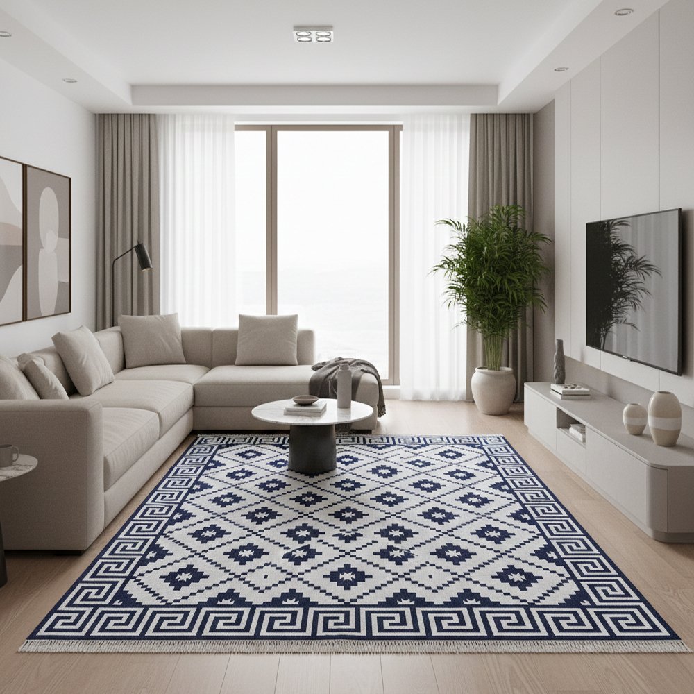 Contemporary Artisan-Made Reversible cotton Floor Rug