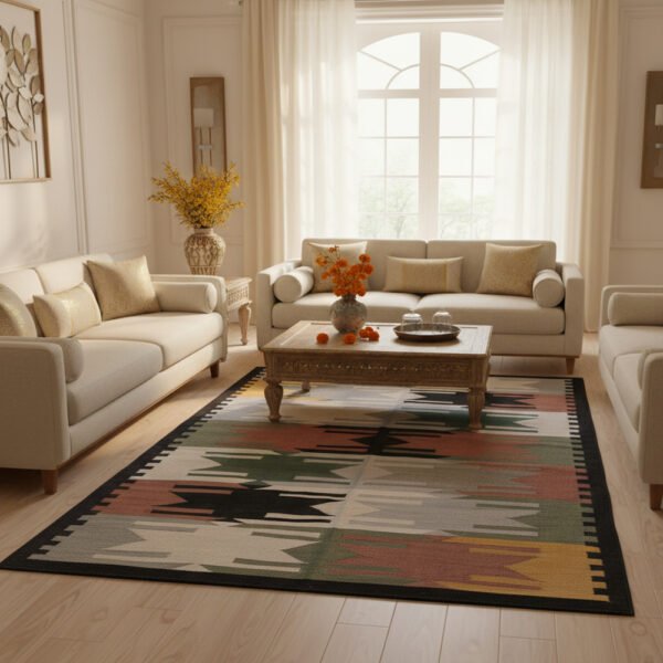 Handwoven Wool & Jute Kilim Dhurrie Rug – Multicolor