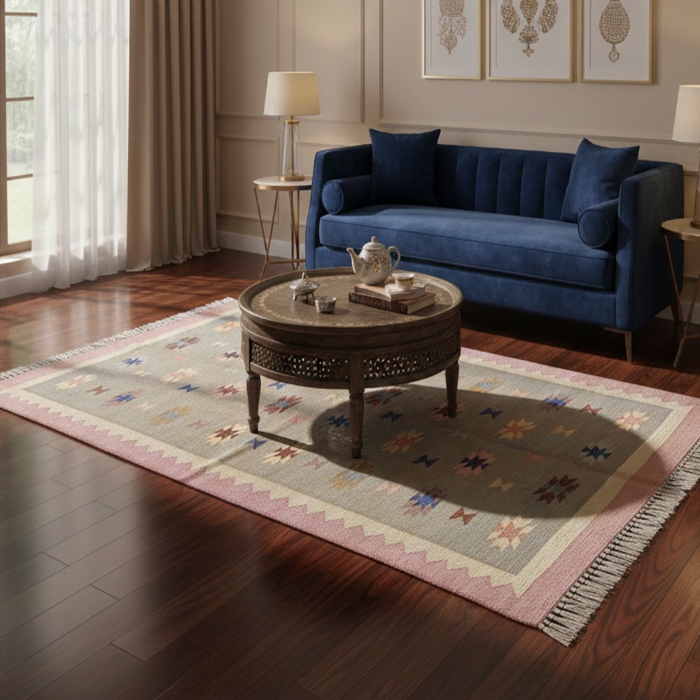 Cotton Panja Dhurrie Rug for Center Table Placement