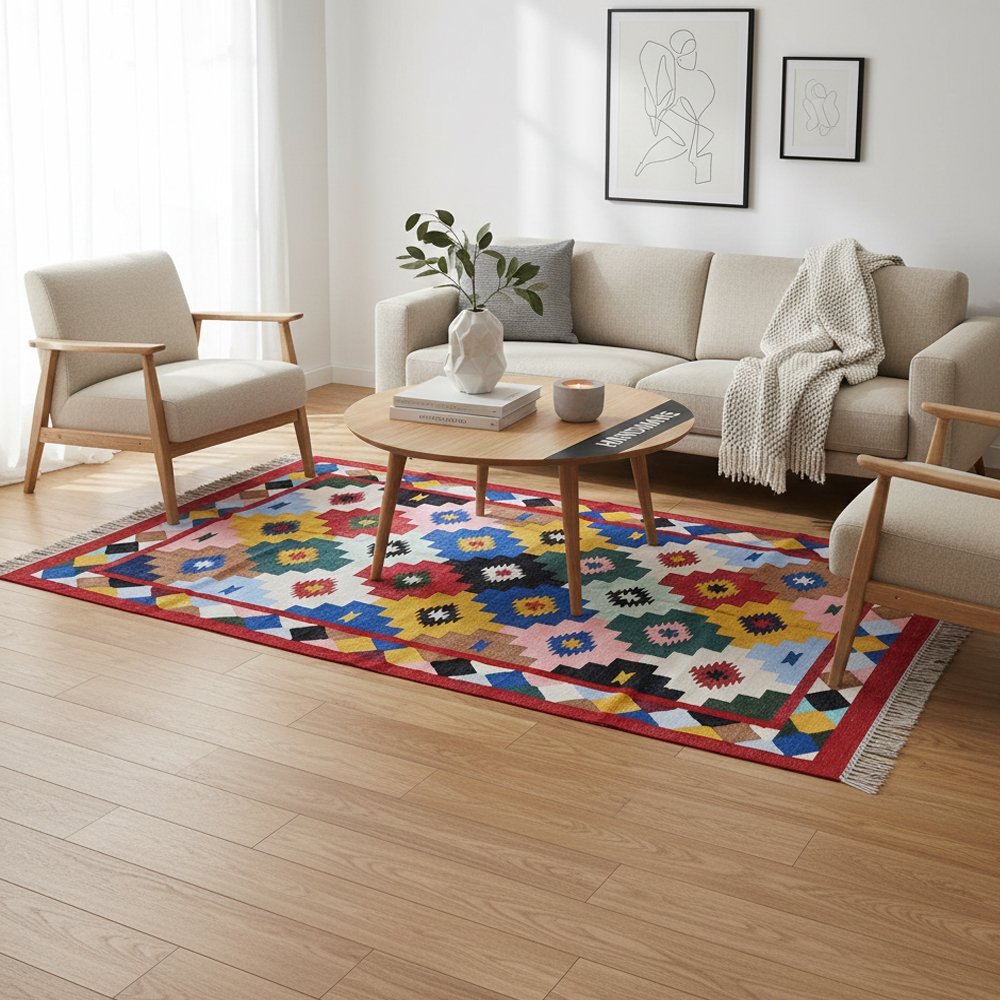 Best Handwoven Wool & Jute Kilim Rug – Multicolor Edition
