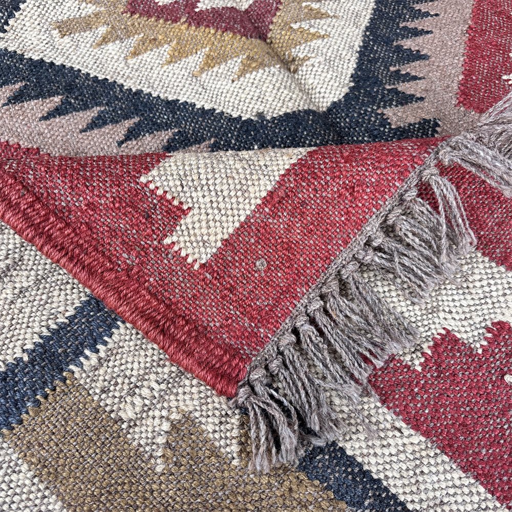 Authentic Indian Handwoven Kilim Rug- Multicolor Wool Jute