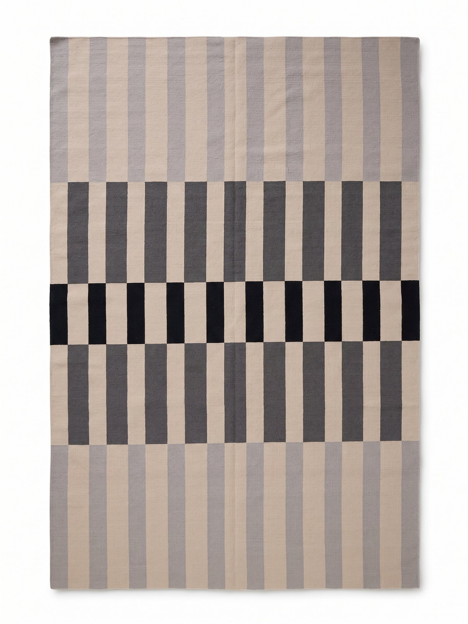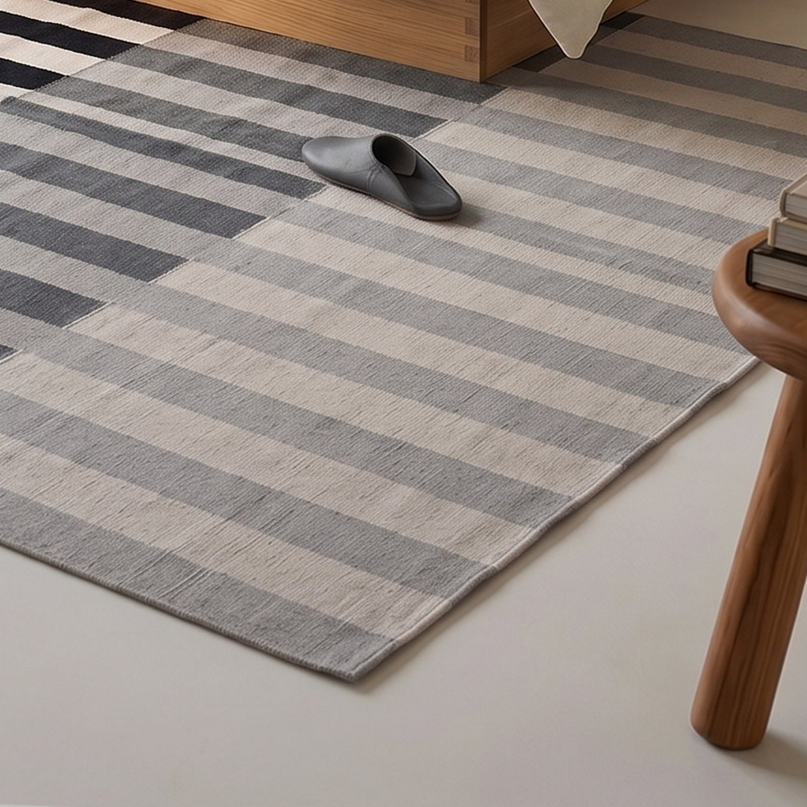 Grey & Black Handmade Wool & Cotton Rug for Bedroom | Custom Flatweave Dhurrie