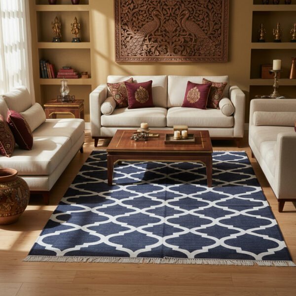 Bring a piece of heritage into your home with our 20-count premium cotton dhurrie rug. These aren’t just rugs; they are stories woven by hand, thread by thread, using the ancient Panja weaving technique.