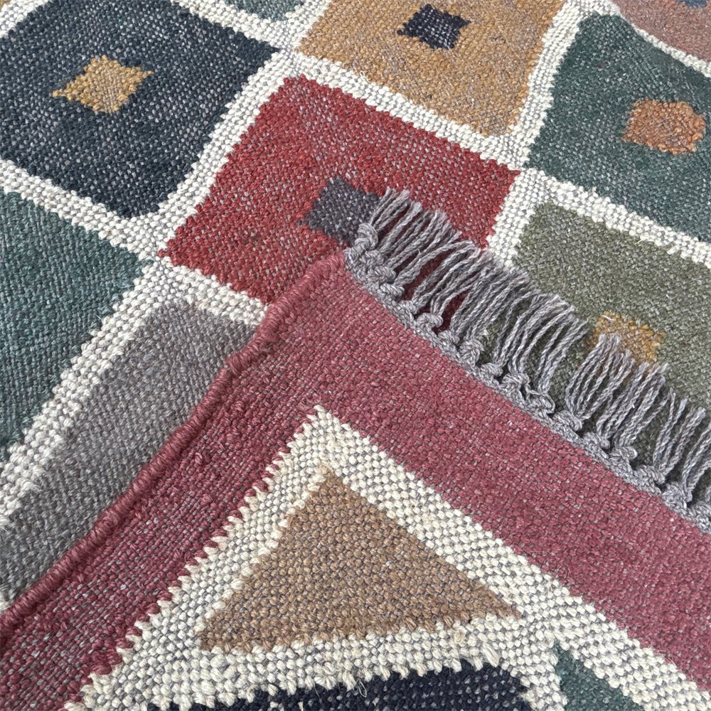 Handmade Wool & Jute Dhurrie Rug – Multicolor