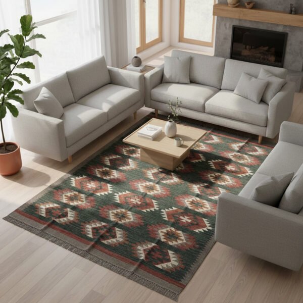 Authentic Handwoven Dhurrie: Wool & Jute