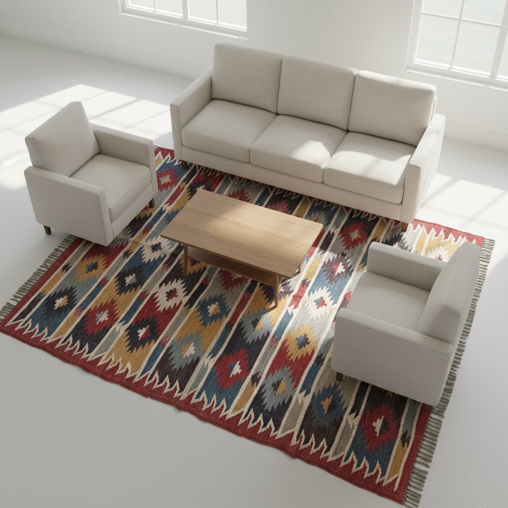 Authentic Handwoven Dhurrie: Wool & Jute