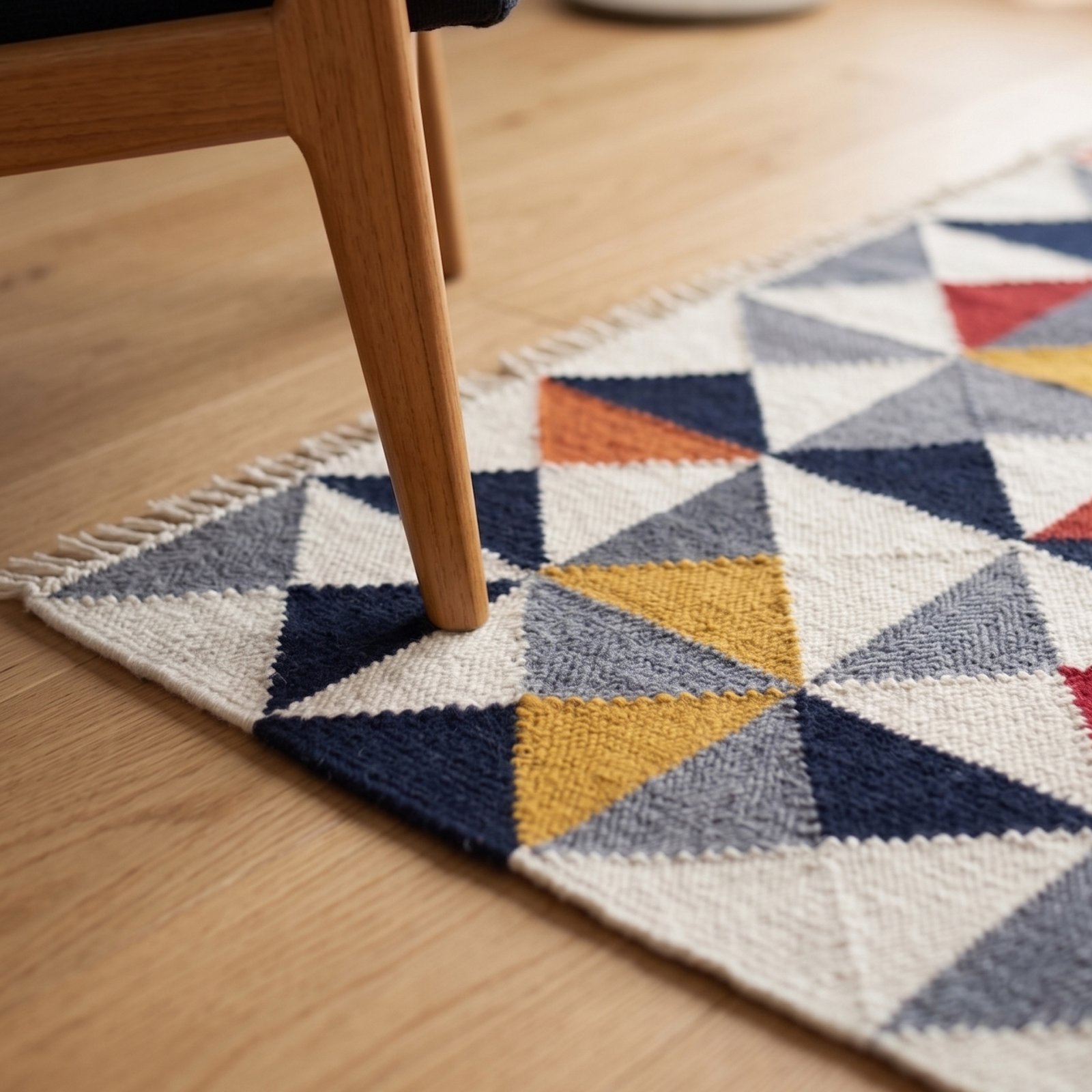 Handwoven Wool Cotton Geometric Dhurrie Rug | Scandinavian Minimalist Area Rug
