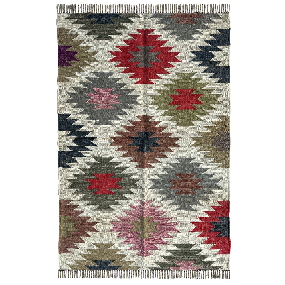 Geometric Multicolor Wool Jute Kilim Rug