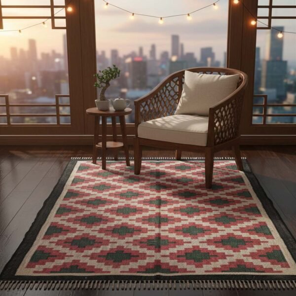 Traditional Handwoven Geometric Kilim Dhurrie