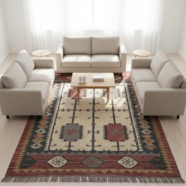 Best Handwoven Wool & Jute Kilim Rug – Multicolor Edition