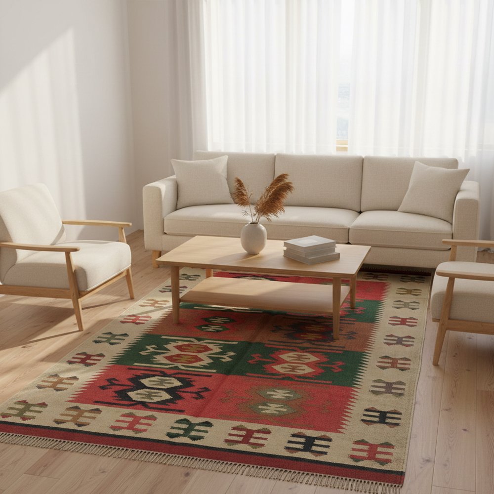 Handwoven Wool & Jute Kilim Dhurrie Rug – Multicolor