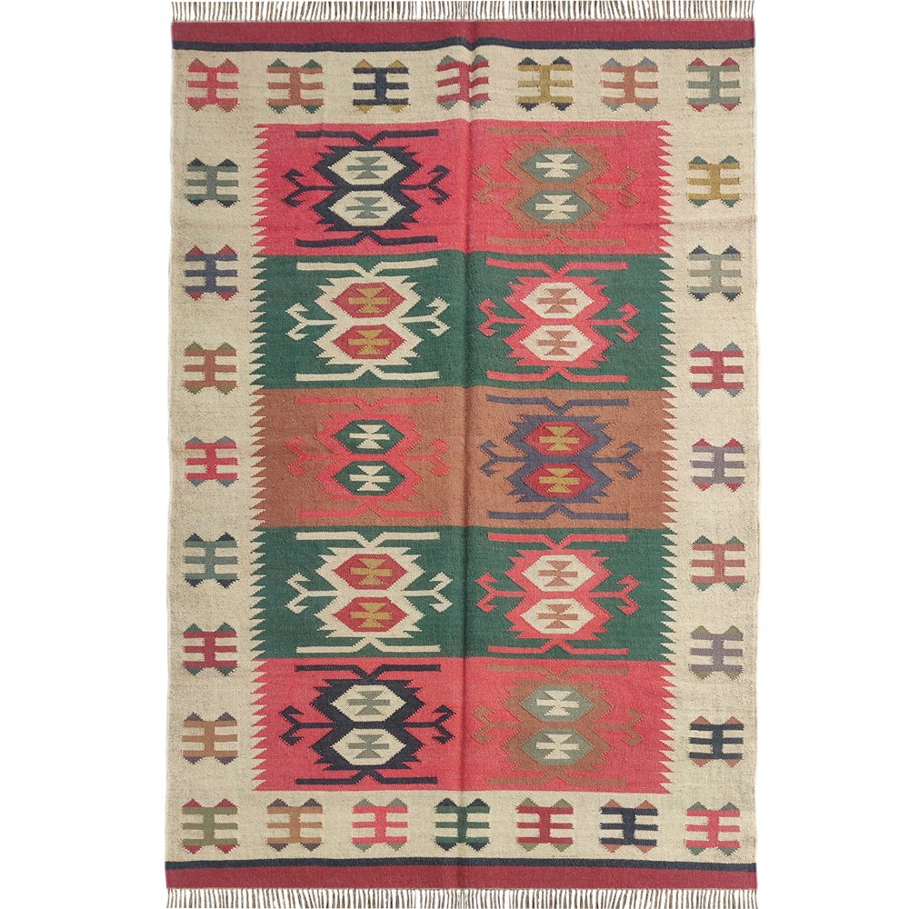 Handwoven Reversible Wool Jute Dhurrie Rug Kilim Style – TAJA98