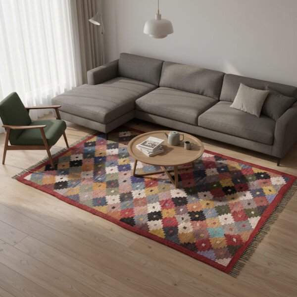 Handwoven Wool & Jute Kilim Dhurrie Rug – Multicolor