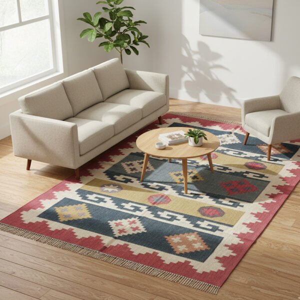 Handwoven Wool & Jute Kilim Dhurrie Rug – Multicolor
