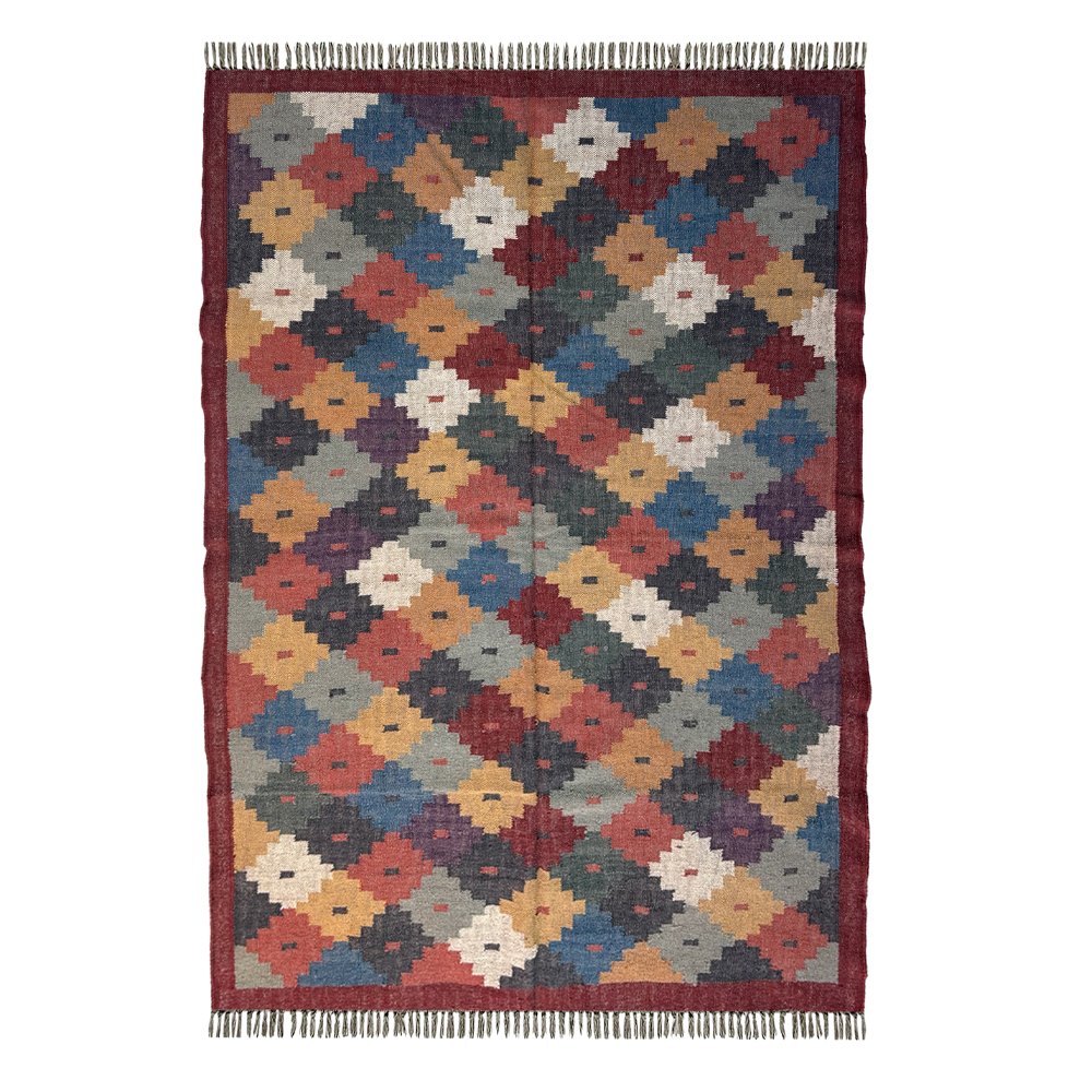 Handwoven Wool & Jute Kilim Dhurrie Rug – Multicolor