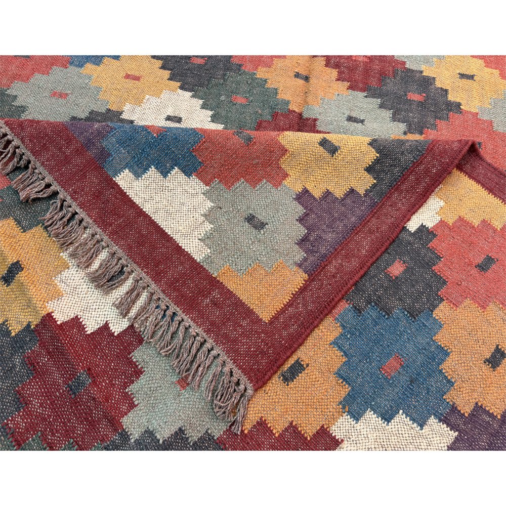 Handcrafted Flatweave Wool Jute Kilim Rug