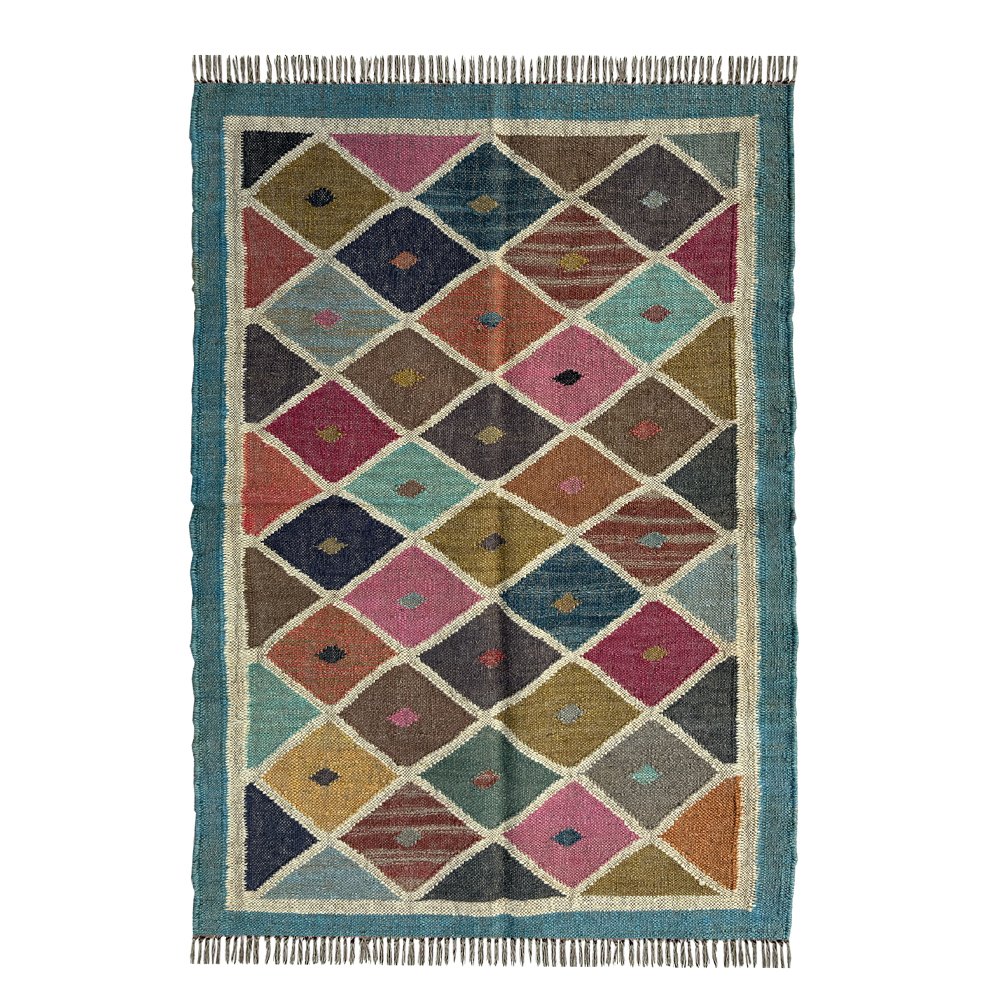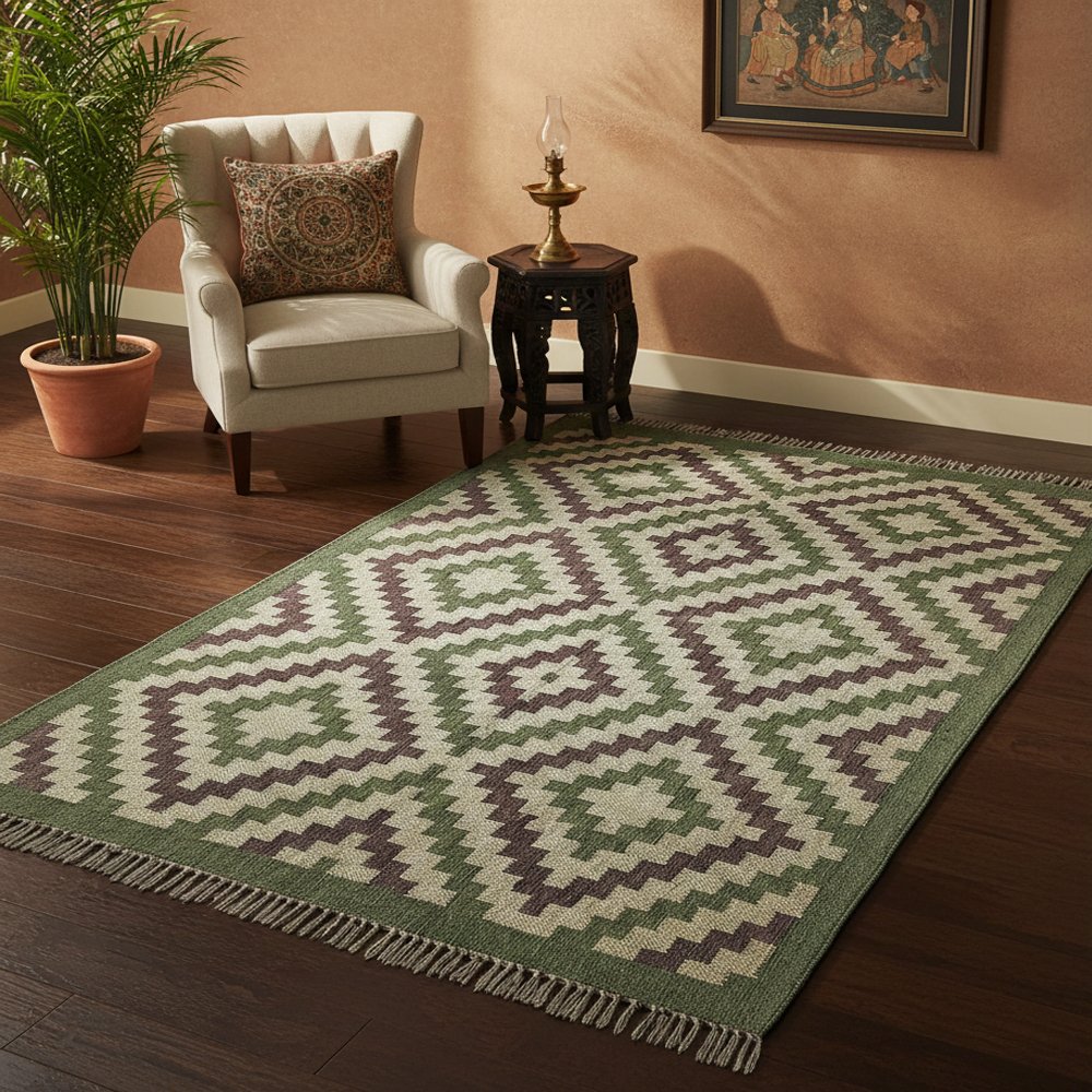 Handcrafted Ethnic Dhurrie Rug Wool & Jute
