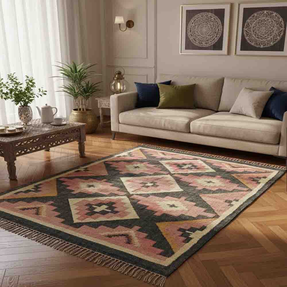 Cultural Handwoven Wool & Jute Kilim Rugs