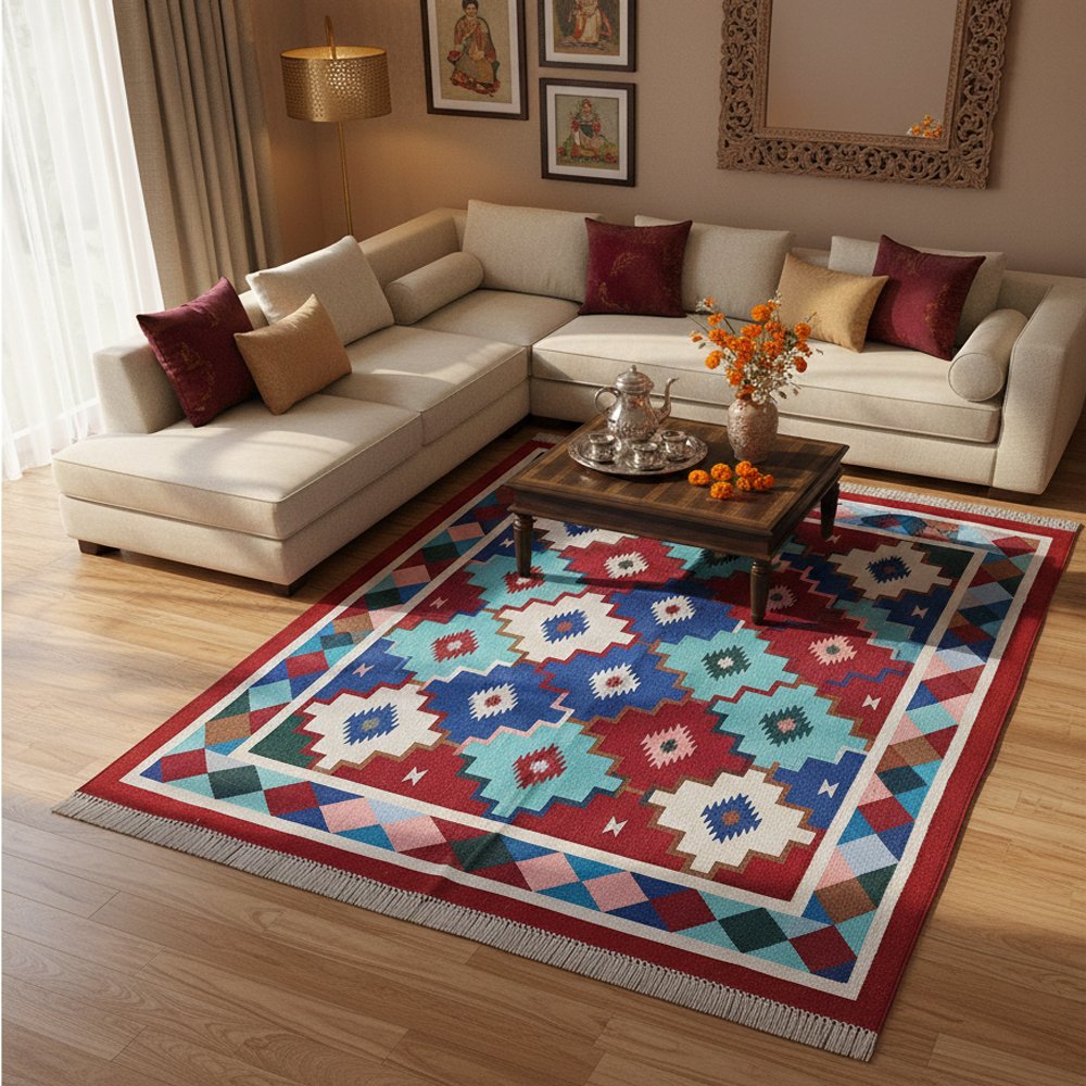 Bring a piece of heritage into your home with our 20-count premium cotton dhurrie rug. These aren’t just rugs; they are stories woven by hand, thread by thread, using the ancient Panja weaving technique.
