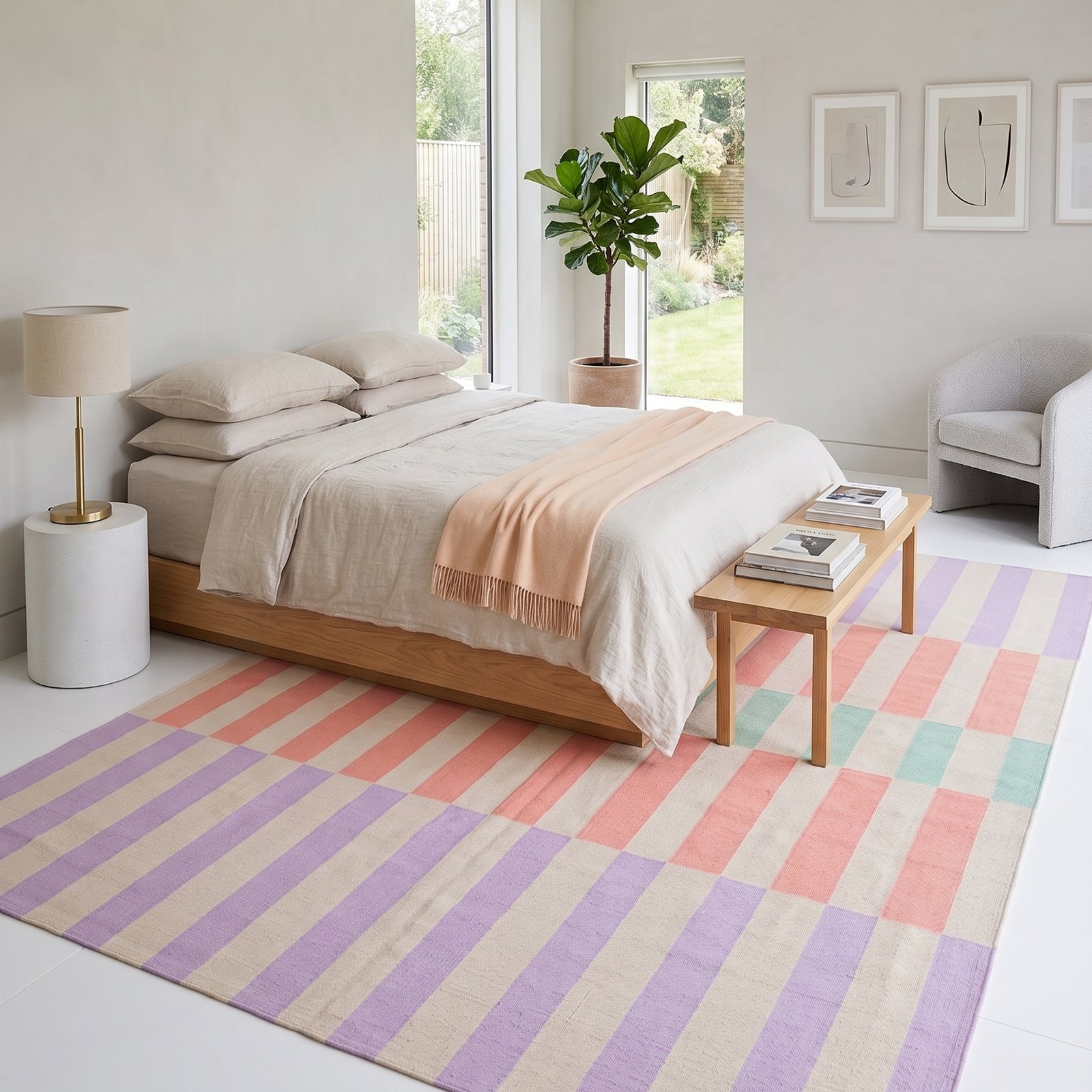 Its minimal and versatile design makes it a perfect addition to modern, boho, Scandinavian, and contemporary interiors. The neutral tones and clean patterns blend effortlessly with any décor style, making your space feel warm, elegant, and inviting. Each rug is individually handcrafted, which means no two pieces are exactly the same—adding a unique, authentic touch to your home.