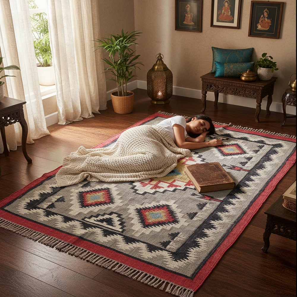 Traditional Handwoven Geometric Kilim Dhurrie