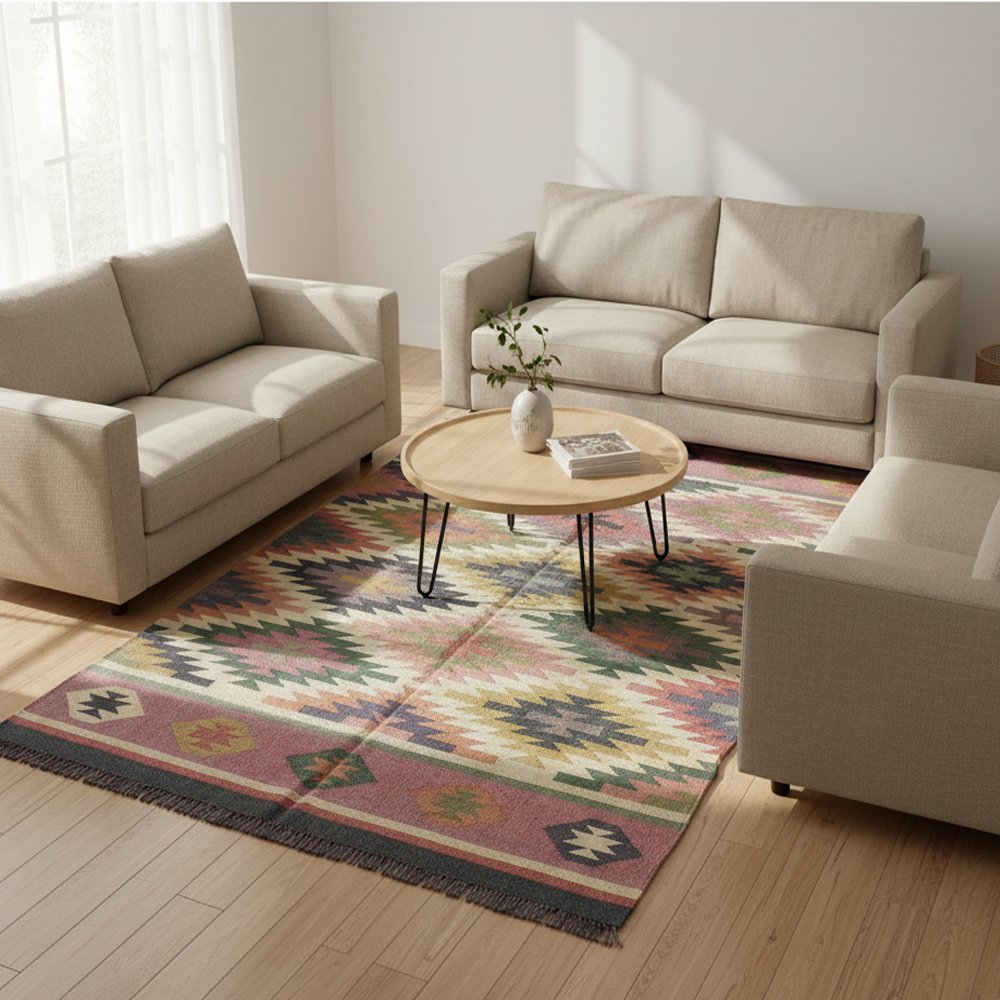 Authentic Handwoven Dhurrie: Wool & Jute
