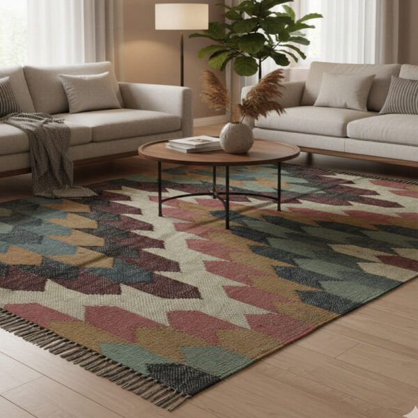 Handwoven Wool & Jute Kilim Dhurrie Rug – Multicolor