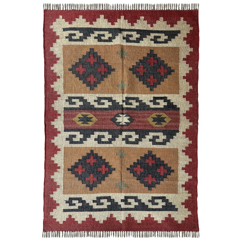 Authentic Indian Handwoven Kilim Rug- Multicolor Wool Jute