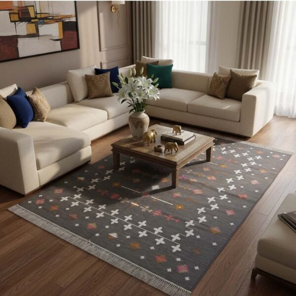 Bring a piece of heritage into your home with our 20-count premium cotton dhurrie rug. These aren’t just rugs; they are stories woven by hand, thread by thread, using the ancient Panja weaving technique.