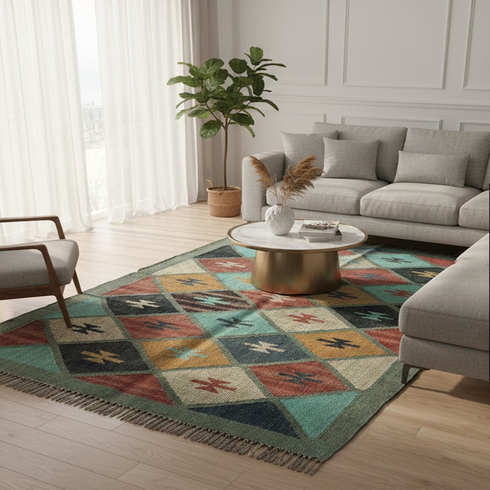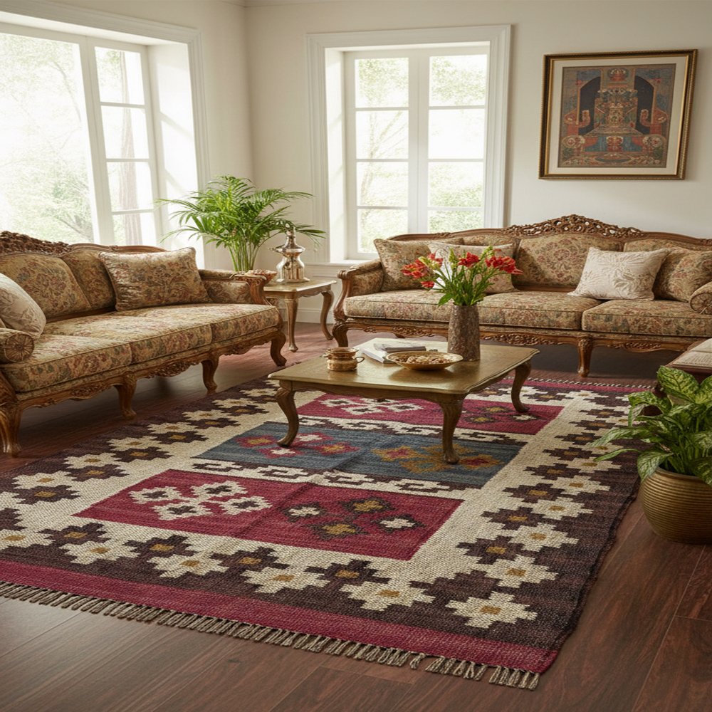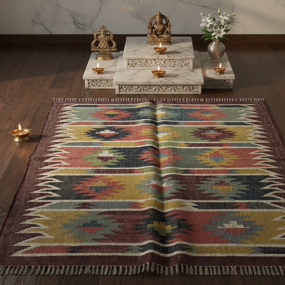 Cultural Handwoven Wool & Jute Kilim Rugs