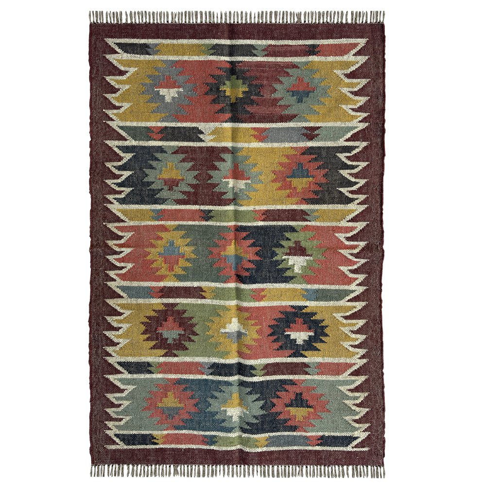 Rustic Handwoven Reversible Wool & Jute Kilim Rug