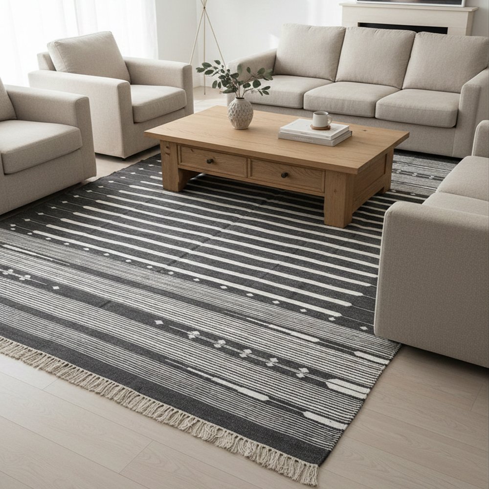 Contemporary Artisan-Made Reversible cotton Floor Rug