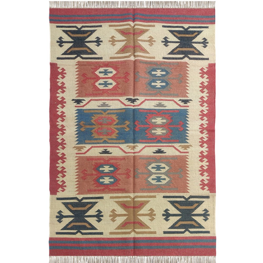 Handcrafted Flatweave Wool Jute Kilim Rug