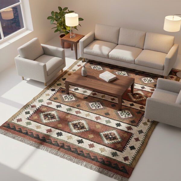 Best Handwoven Wool & Jute Kilim Rug – Multicolor Edition