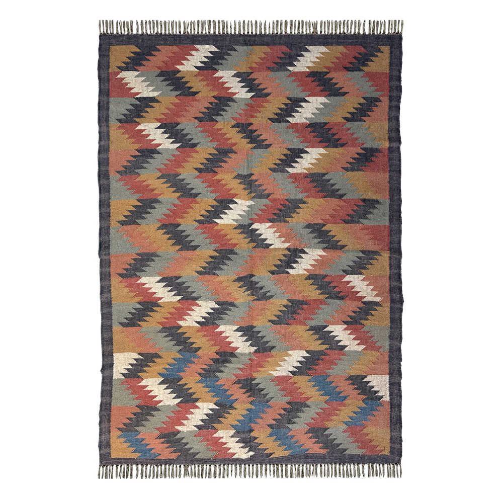 Handwoven Wool & Jute Kilim Dhurrie Rug – Multicolor