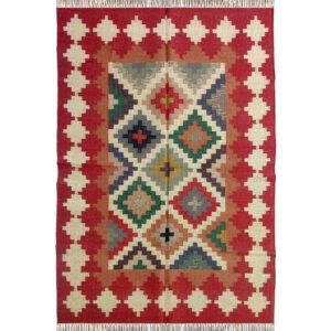 Handmade Wool & Jute Dhurrie Rug – Multicolor
